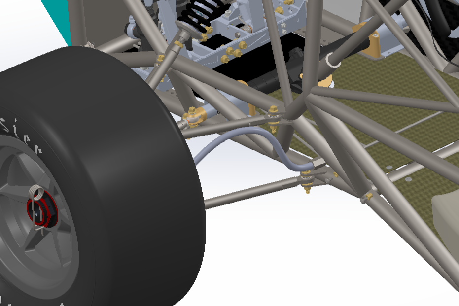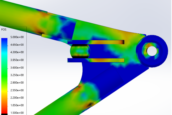 These calculations are also double checked with simplified hand calculations where the control arm is treated as a 3 force member then wall thickness accounted for finding the maximum stress in the tubes. Buckling is also double checked using hand calculations where the maximum compressive force is used.